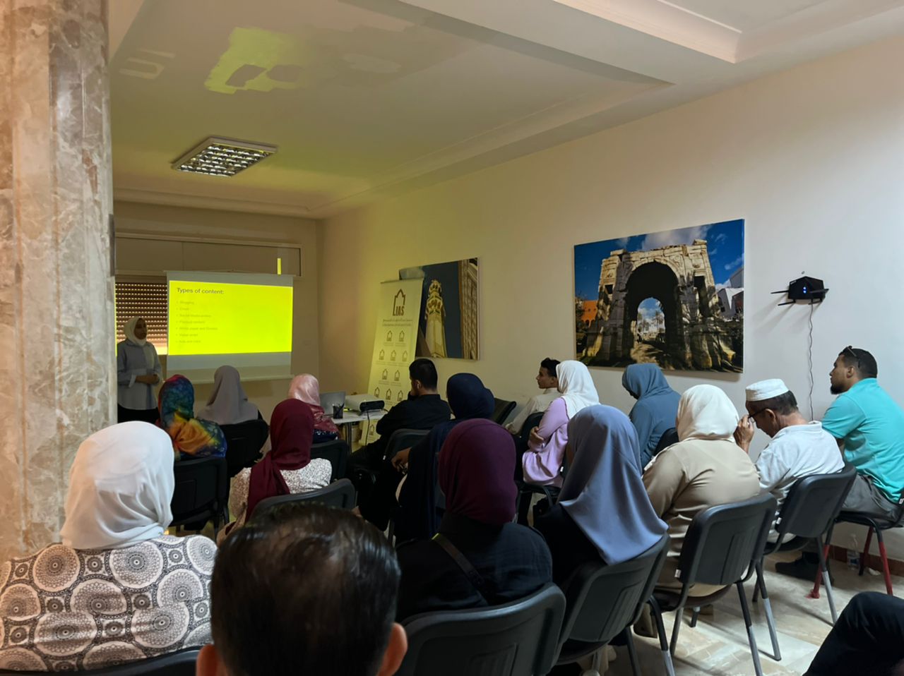 نظم مجمع ليبيا في مكتبه في طرابلس مجموعة ورش تدريبية، في أساسيات كتابة المحتوى بالتعاون مع المدربة غفران رحومة