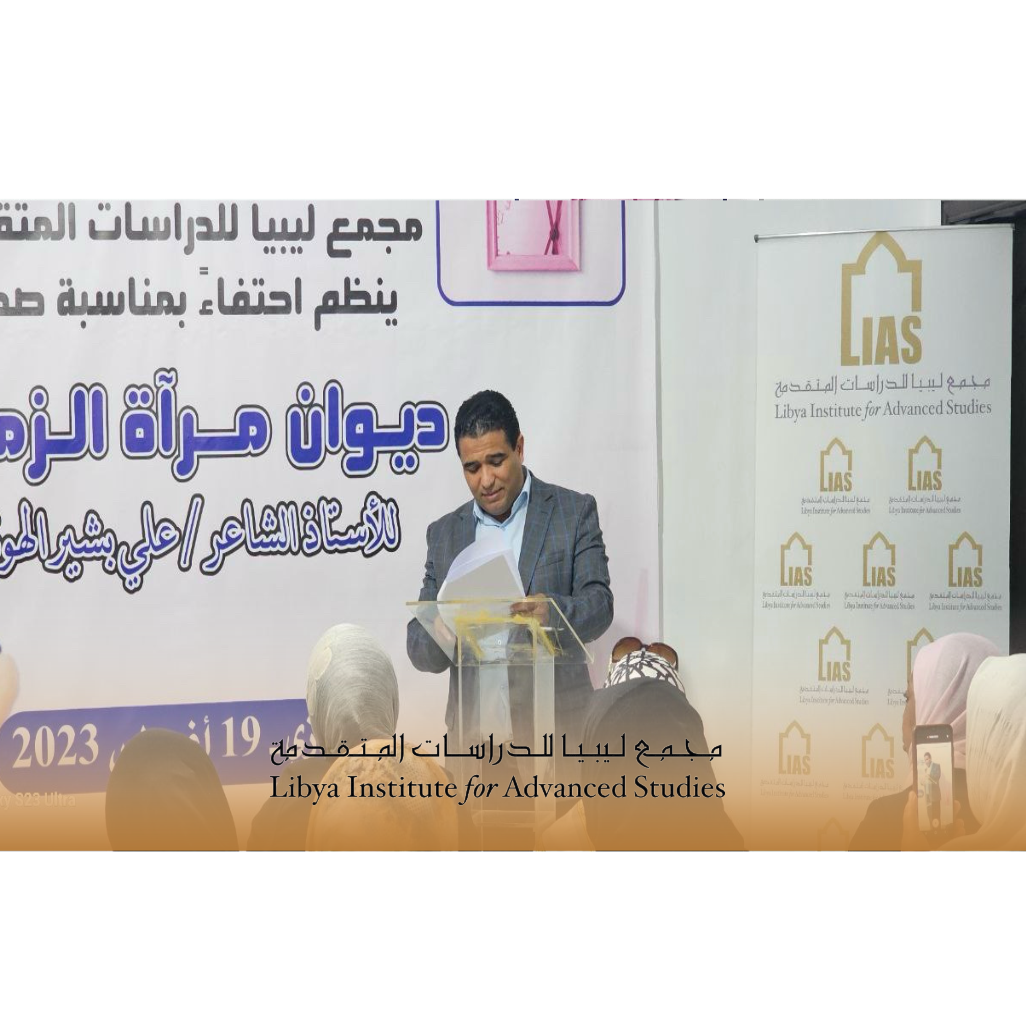 نظّم مجمع ليبيا للدراسات المتقدمة اليوم السبت 19 أغسطس 2023، ندوة احتفاء بصدور ديوان مرآة الزّمان للأستاذ الشاعر علي بشير الهوني، في قاعة مجمع ليبيا للدراسات المتقدمة في بنغازي، مع معرض للفنّ التشكيلي للفنان صلاح الفلّاح، بحضور مجموعة من الأستاذة والكتّاب والمهتمّين والفنّانين والشعراء والمبدعين وممثلين عن جمعيات أهلية ومجتمعية وثقافية وخيرية وأسرة الشاعر ورفاقه.