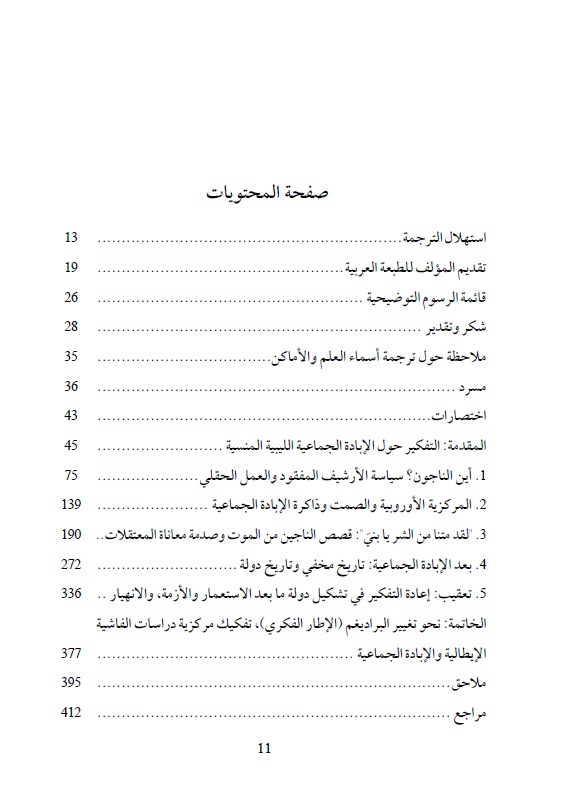 هذا الكتاب: يستعيد الإبادة الجماعية الليبية المنسية، على وجه التحديد التاريخ المخفي للمعتقلات الإيطالية الفاشية (1929-1934) من خلال الشهادات الشفهية للناجين الليبيين. ويربط هذا الكتاب عبر قراءات عابرة للثقافات ومقارنة، بين الإبادة الجماعية الليبية وبين الجذور الاستعمارية لدراسات الهولوكوست/المحرقة والإبادة الجماعية.