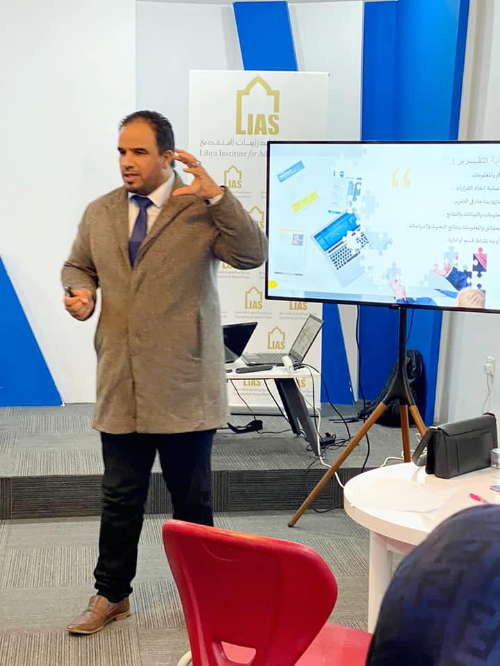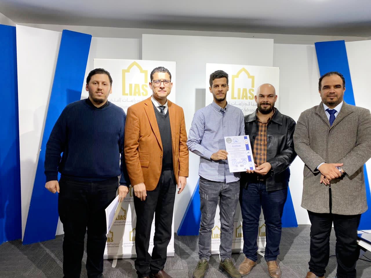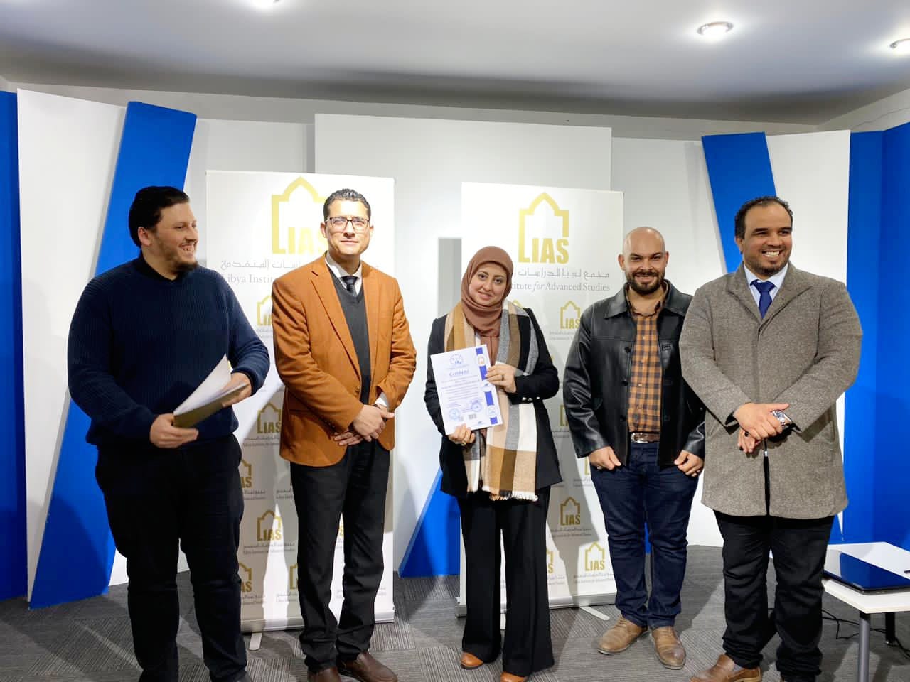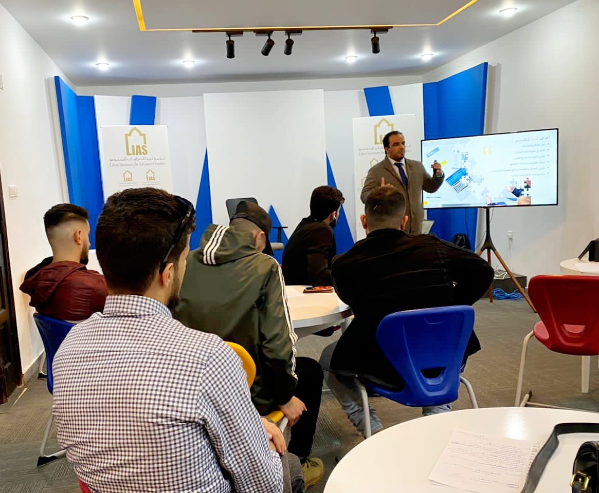 The closing ceremony was attended by Mr. Aseel Al-Sheikhi, Executive Director of the Intellectual Leadership Company, Mr. Muhannad Al-Awami, Director of the Libyan-European Institute, and Mr. Salah Al-Abbar, Director of the Training Department at the Libya Academy. The trainees in this course were awarded a certificate from the Libya Academy, Al-Reyadah Company, and the Libyan-European Institute.