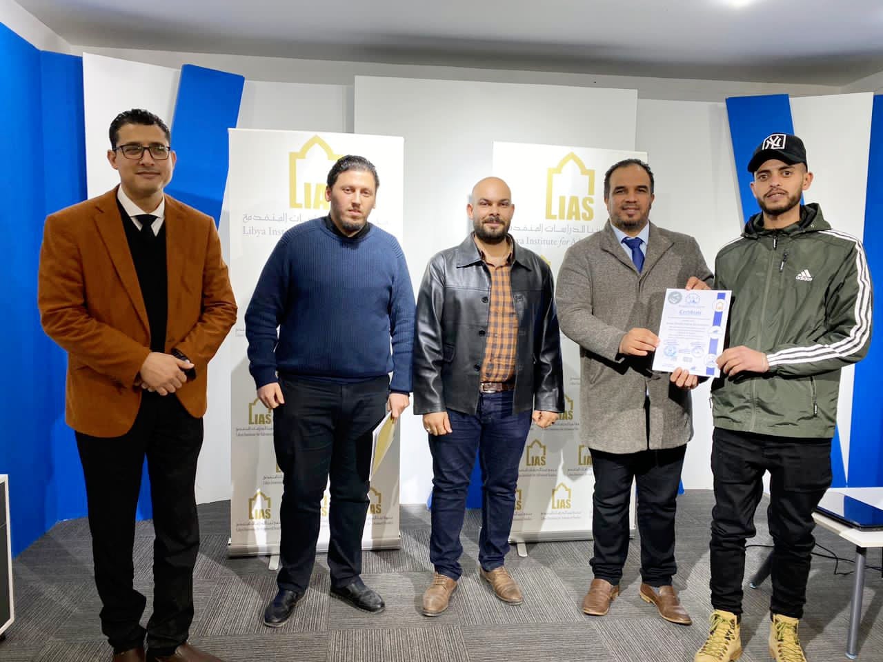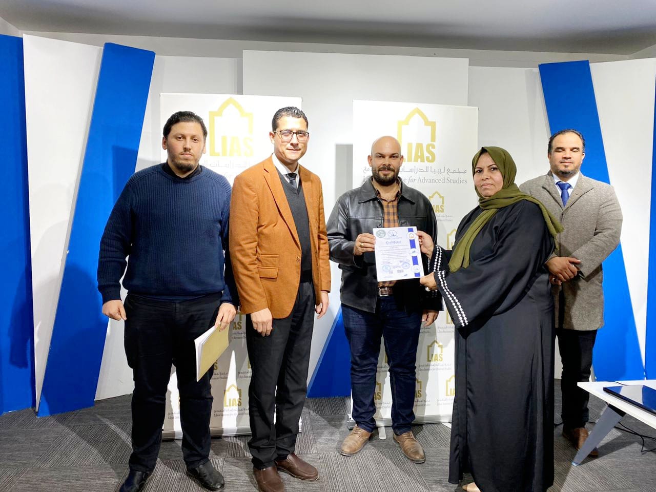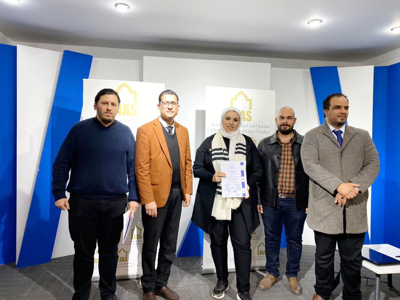 The closing ceremony was attended by Mr. Aseel Al-Sheikhi, Executive Director of the Intellectual Leadership Company, Mr. Muhannad Al-Awami, Director of the Libyan-European Institute, and Mr. Salah Al-Abbar, Director of the Training Department at the Libya Academy. The trainees in this course were awarded a certificate from the Libya Academy, Al-Reyadah Company, and the Libyan-European Institute.
