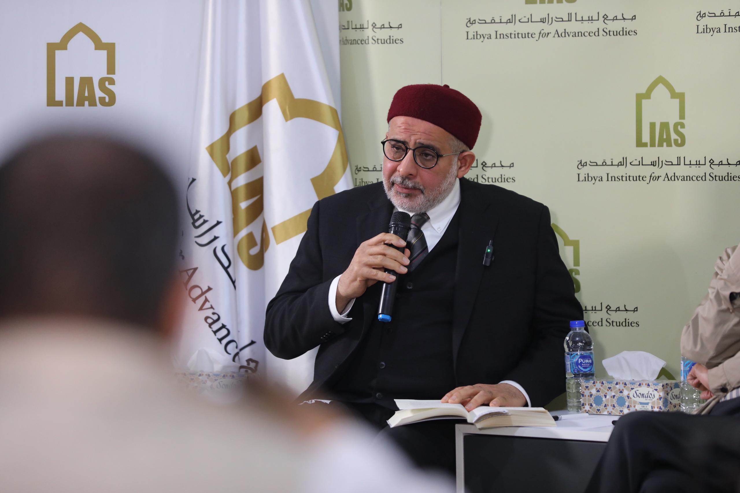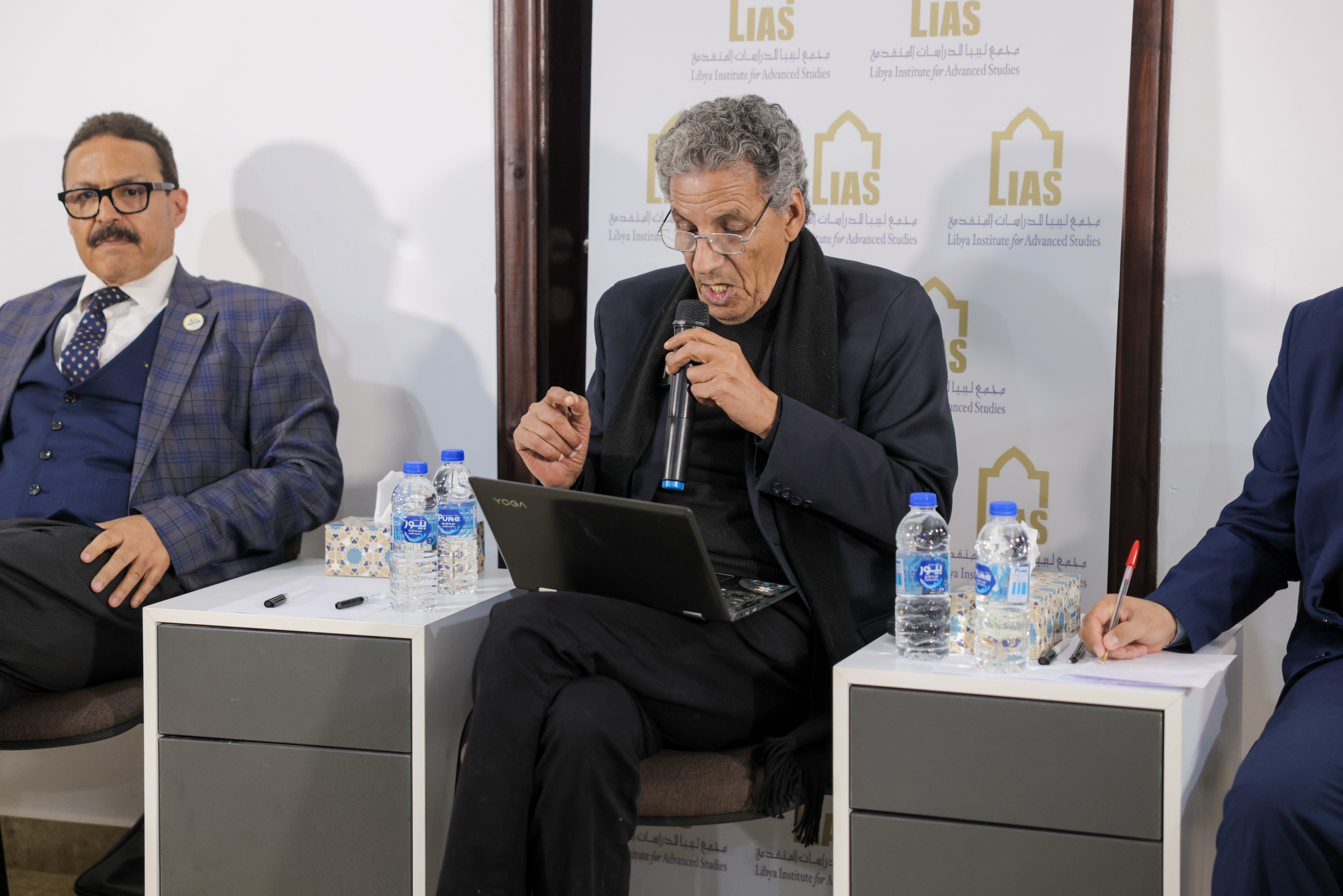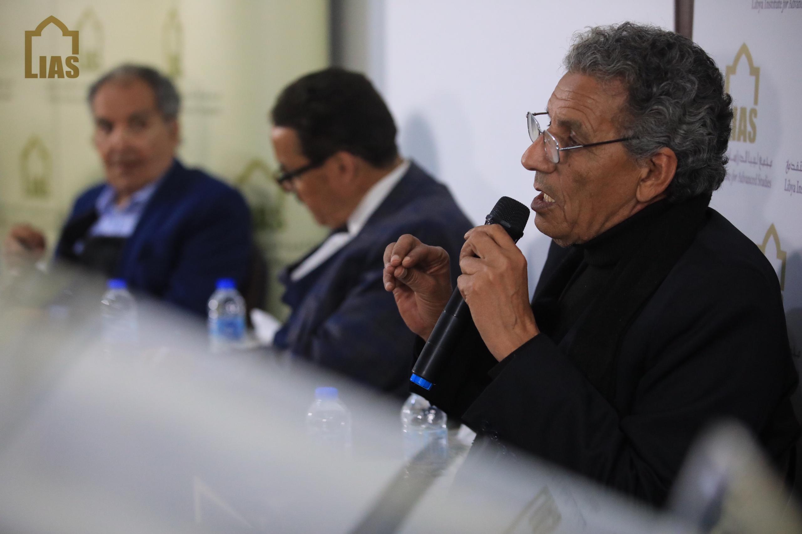 The intervention of Prof. Dr. Aref Nayed, President of the Libya Academy for Advanced Studies, about the book: The Knights of the Spirit by Prof. Dr. Naguib El Hussadi, Professor of Philosophy at the University of Benghazi, and I supported his statement by asking about Dr. Al-Hasadi’s project, what this project is, its stages, rules, and evidence, in terms of the foundation to deny errors and wrong ideas, and then building Logical and philosophical cognitive, then spiritual, value-based, moral, societal and political construction of life.